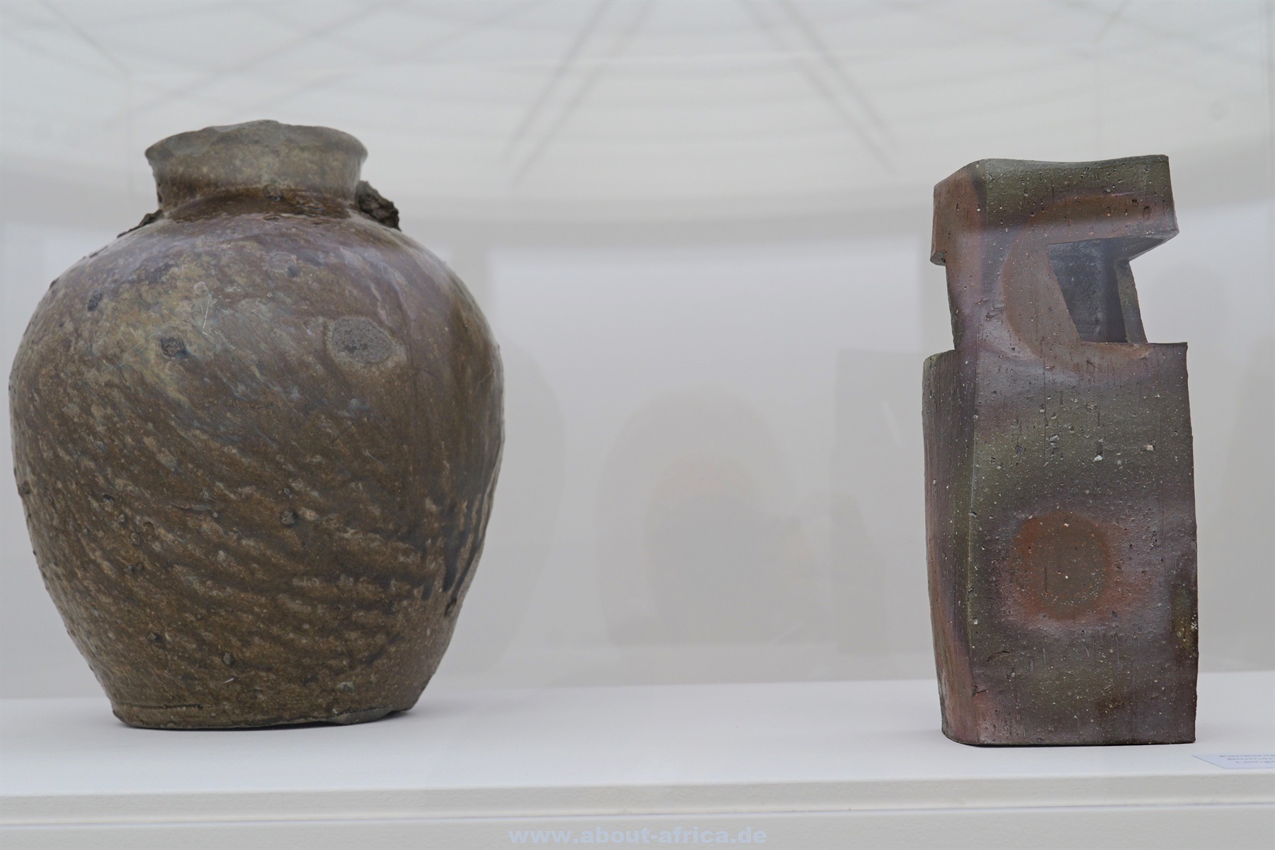 Zur Shino-Ästhetik (linkes Objekt) hat mir Rudolf Strasser einmal gesagt: Denken Sie an ein Schneefeld, bei dem langsam der Boden wieder durchschimmert.