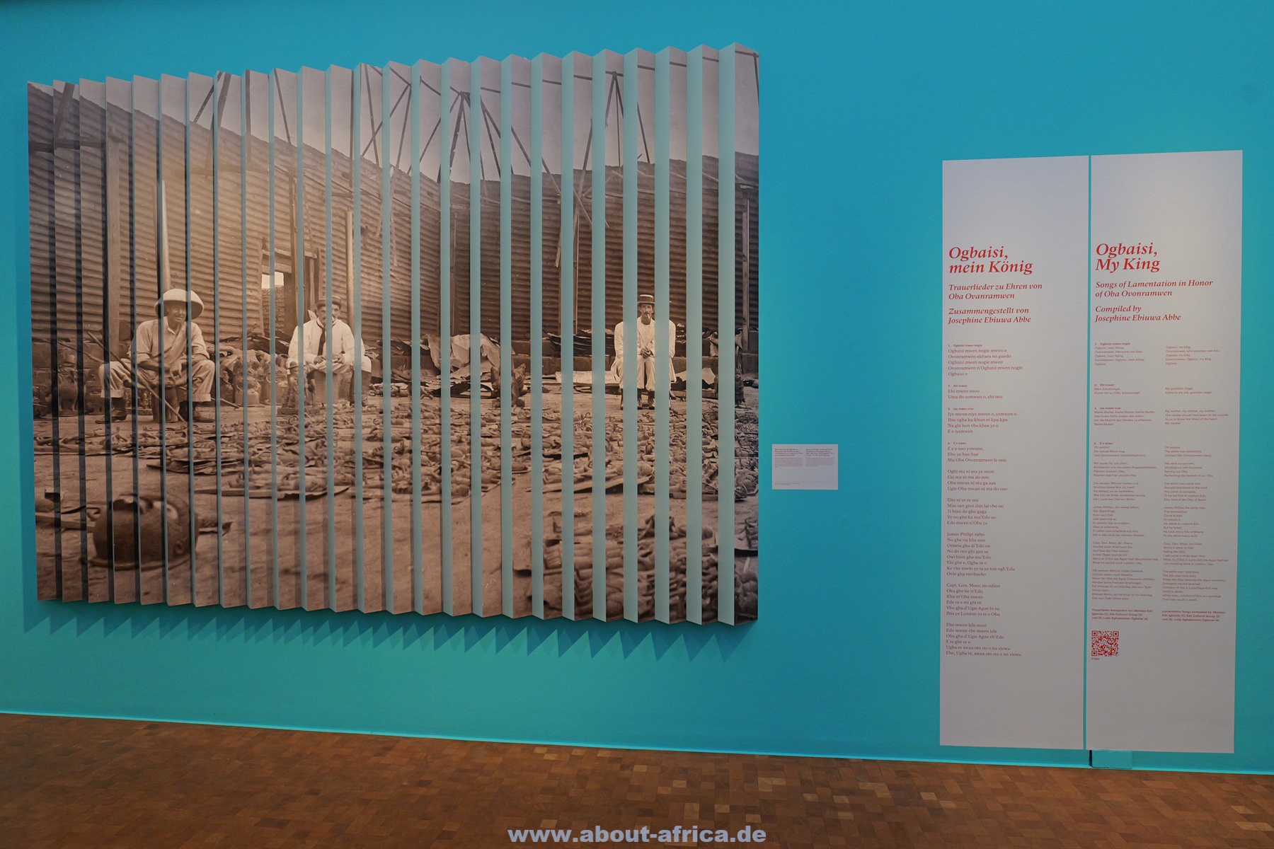 Die Ausstellung, die in Zusammenarbeit mit Partnern aus Nigeria und der Diaspora entstanden ist, beginnt mit einem zerschnittenen Foto von Omoregis Osakpolot. Es zeigt, dass das Erbe auch im heutigen Benin noch präsent ist. Vor allem aber ist es eine sehr stimmungsvolle Einführung.