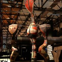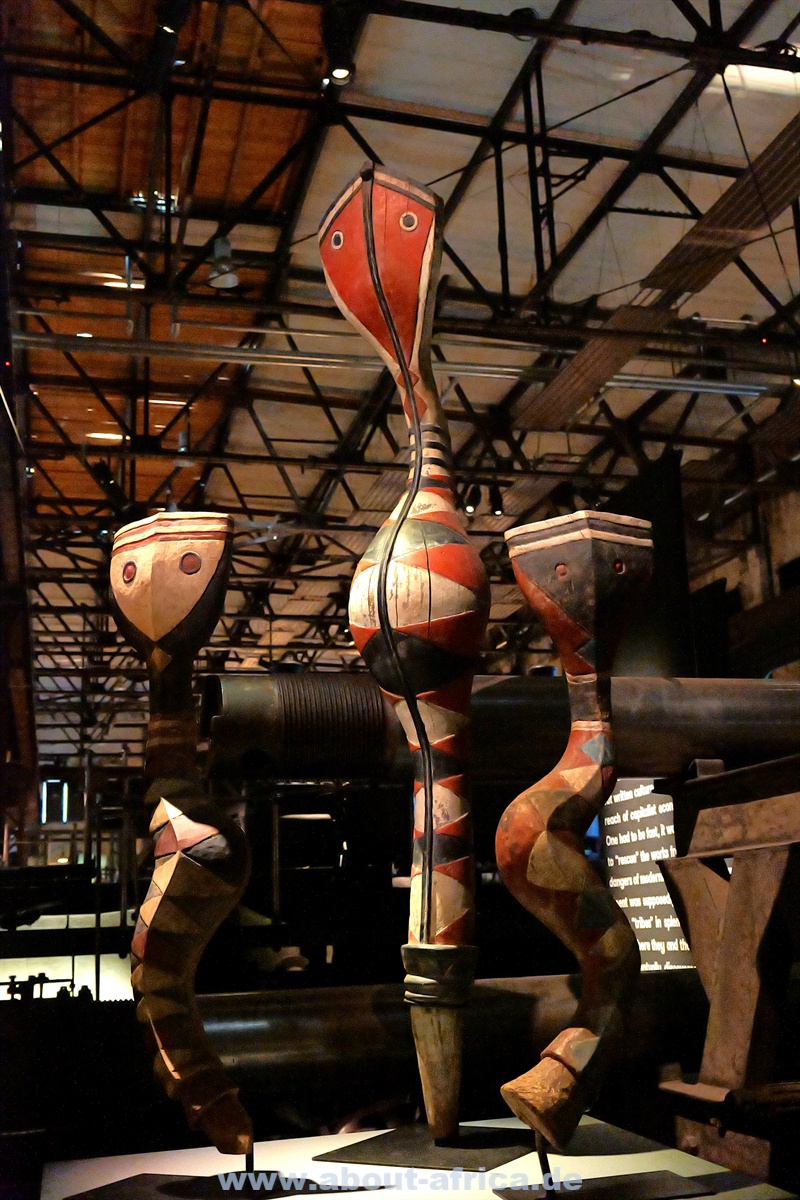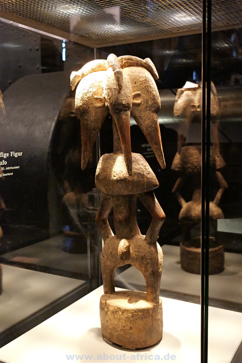 Und die Kunst? Da gibt es zum einen traditionelle afrikanische Werke aus der Sammlung Reinhard Klimmt und einer weiteren Saarbrücker Sammlung. Ebenfalls starkt verteten ist die moderne afrikanische Kunst. Besonders beeindruckend sind Porträts und Raumfahrer-artige Skulpturen. Schließlich wollte Afrika in den 1970er Jahren auch den Weltraum erobern.