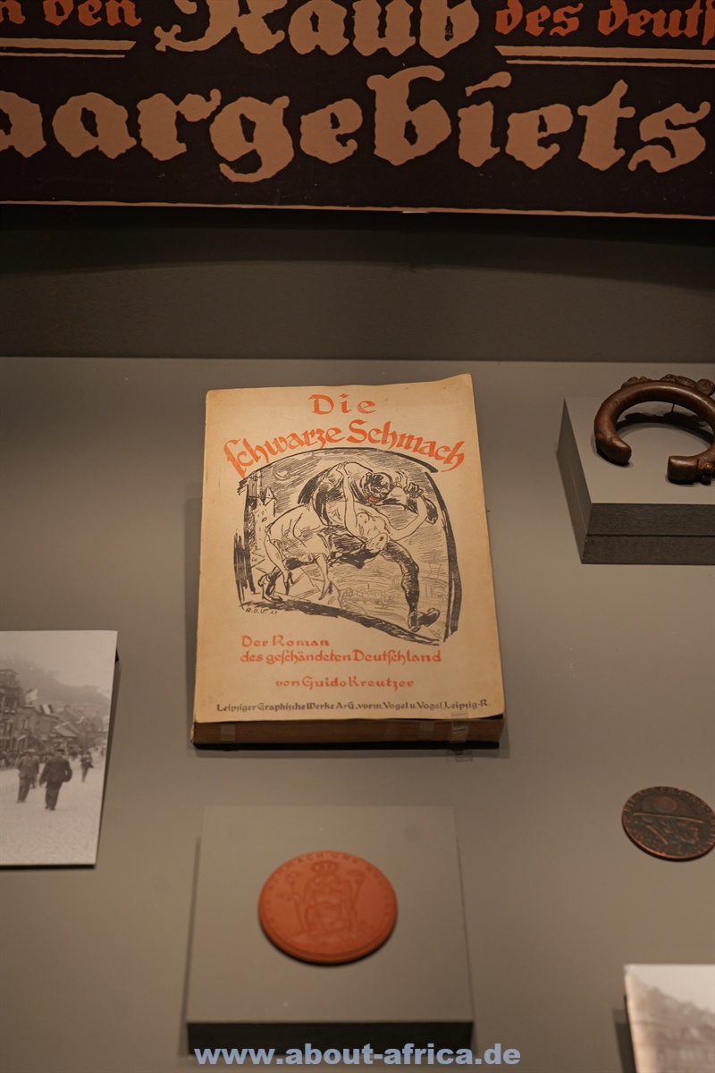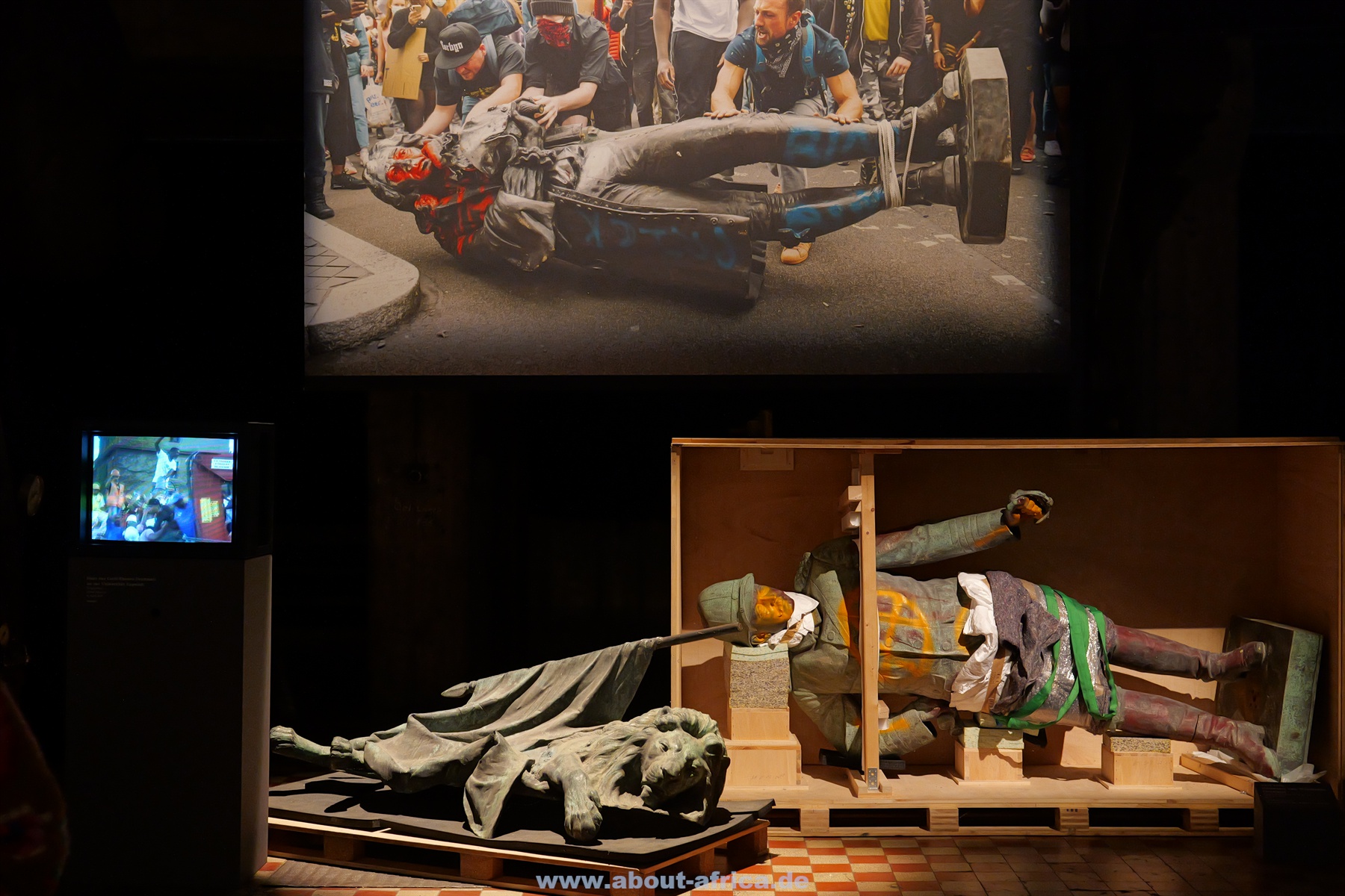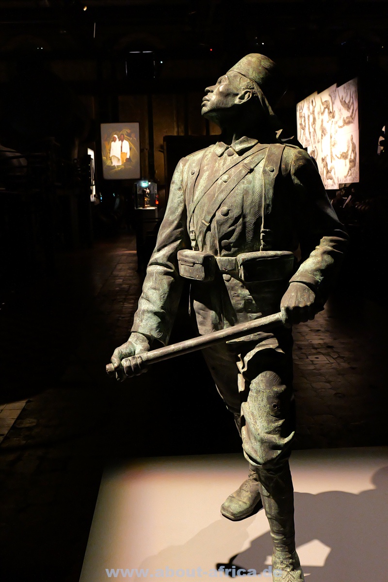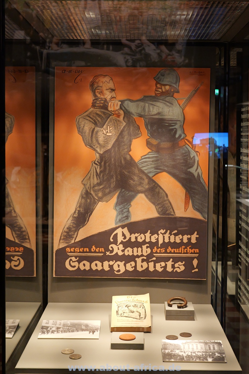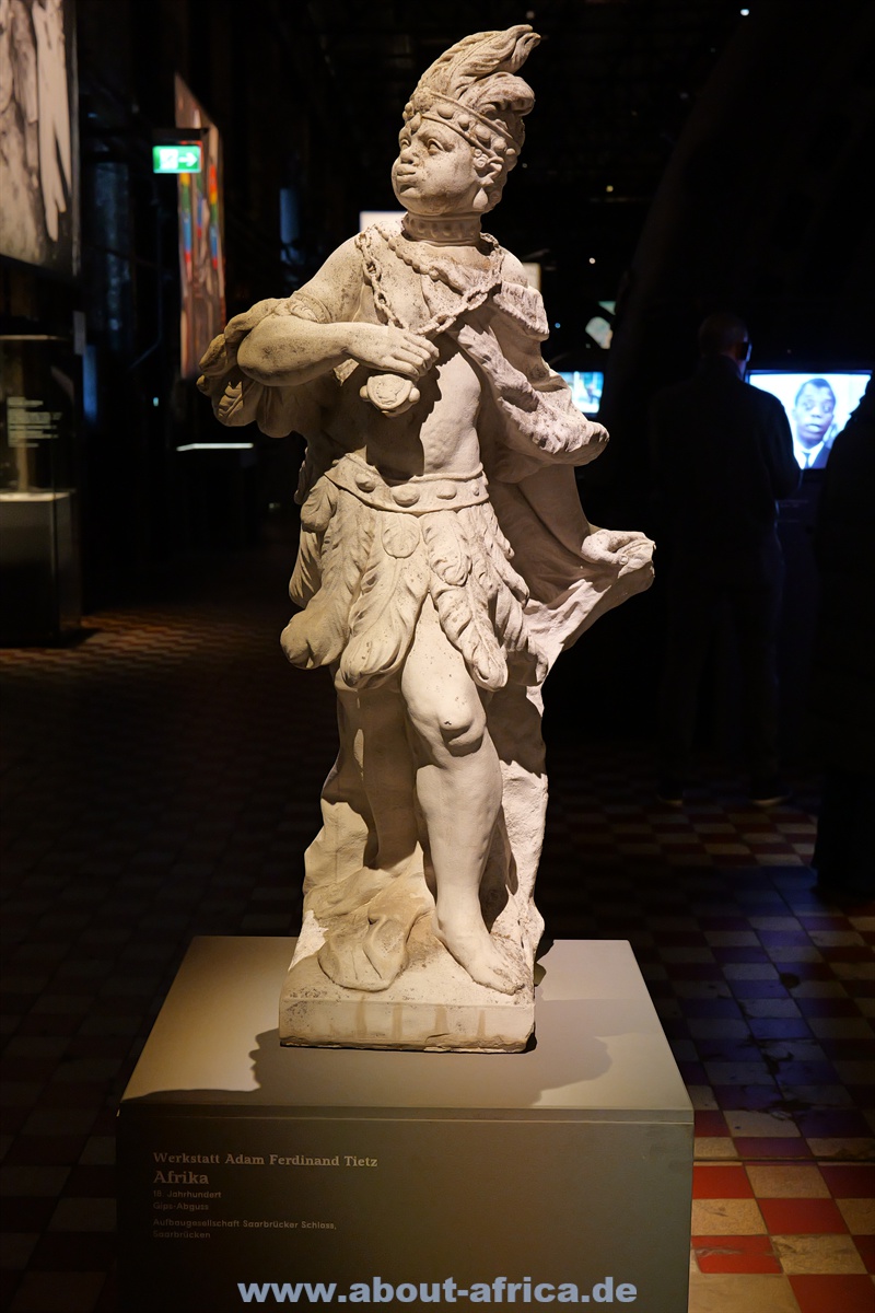 Die Ausstellung betrachtet Afrika nicht nur geografisch, sondern auch über die Menschen, die es verlassen haben. Dementsprechend liegt ein Schwerpunkt auf afrikanischen Spuren in Europa und insbesondere im Saarland. Und die rassistischen Reaktionen darauf. Aber natürlich geht es auch um den Kolonialismus. Hier ist das gestürzte Denkmal von Hermann von Wiessmann zu sehen. Es wurde vor 55 Jahren von Studenten der Hamburger Universität umgeworfen.