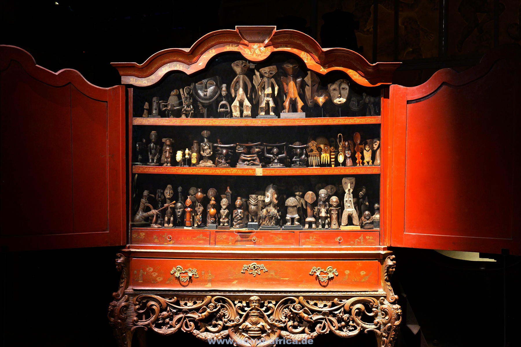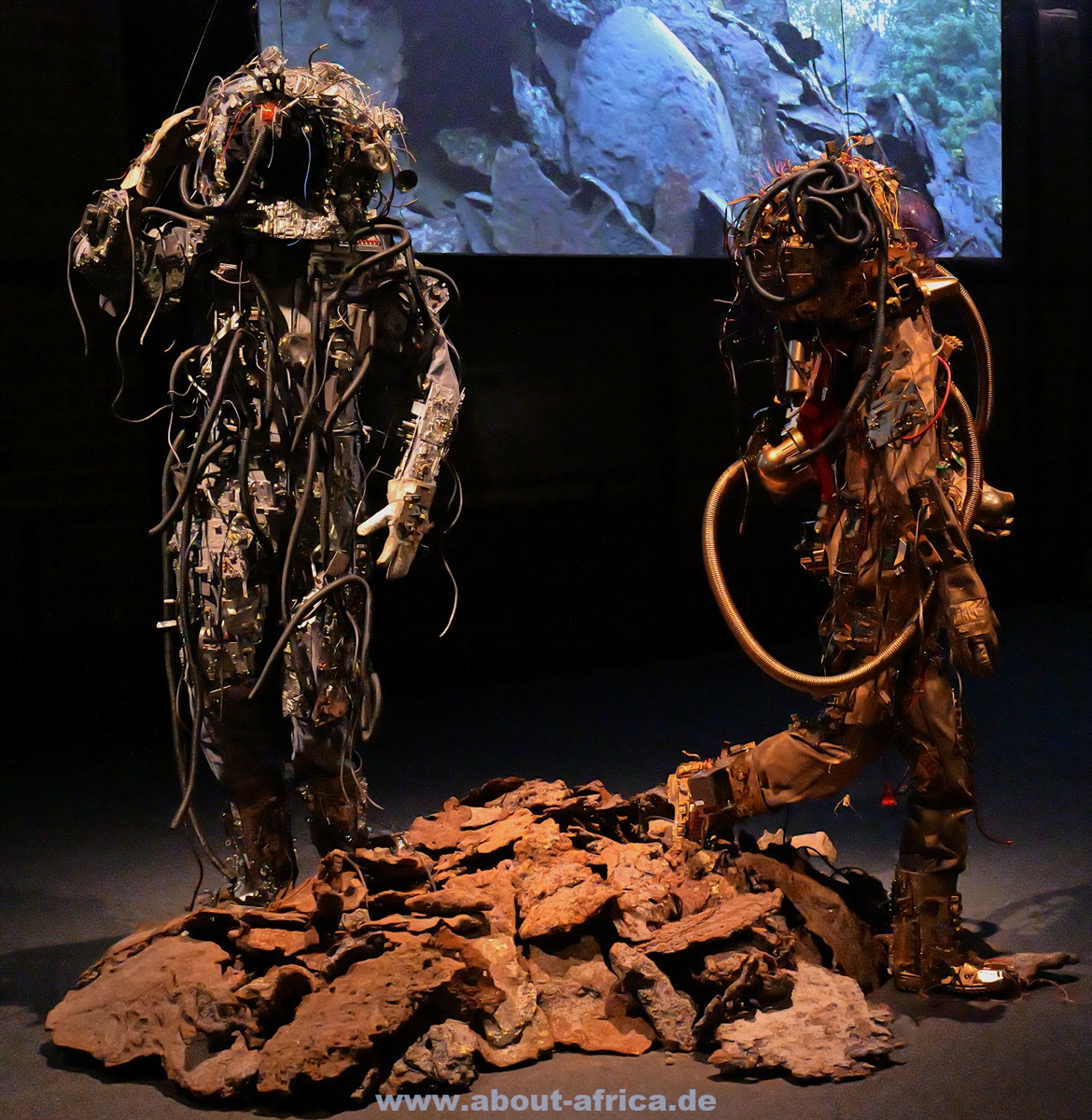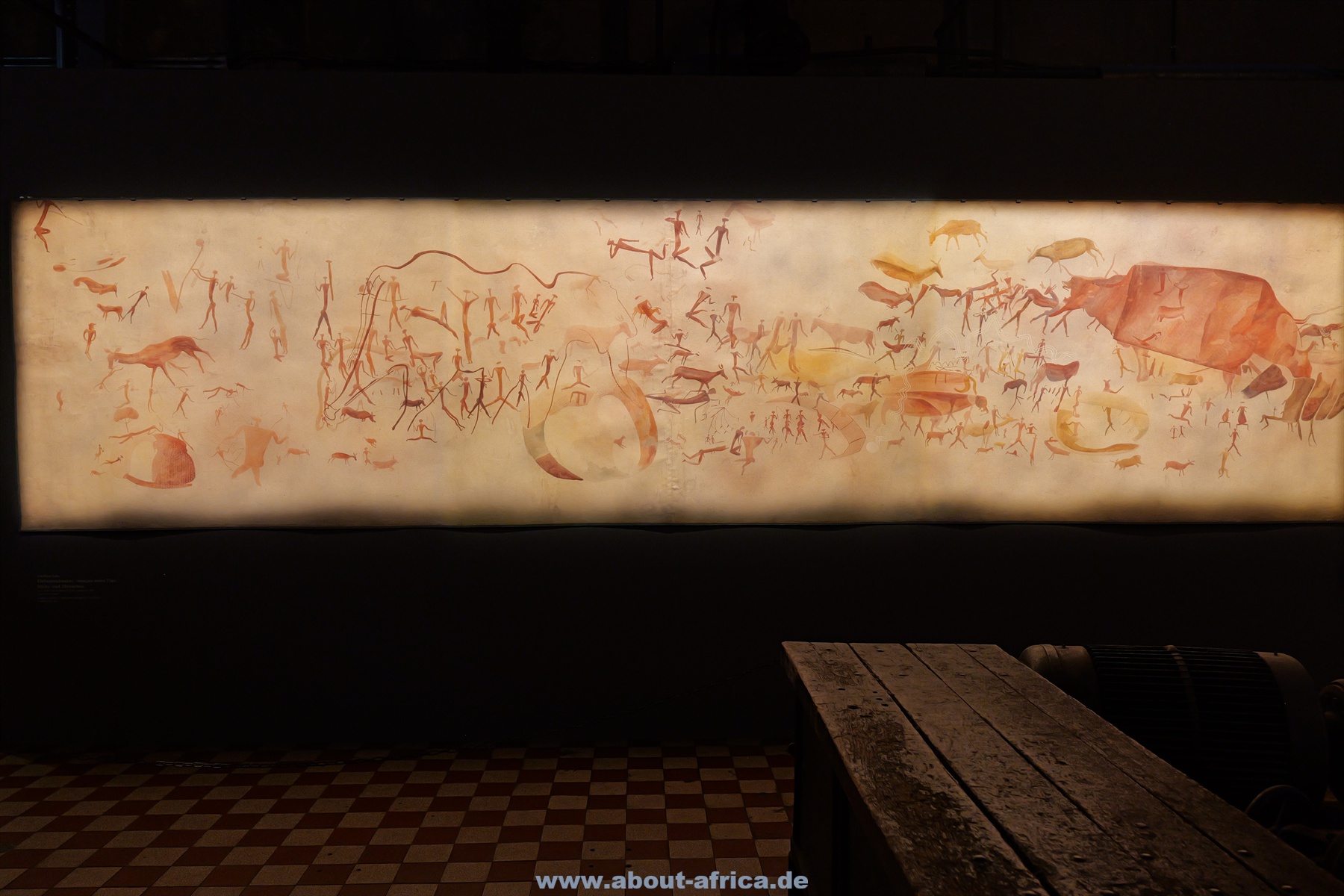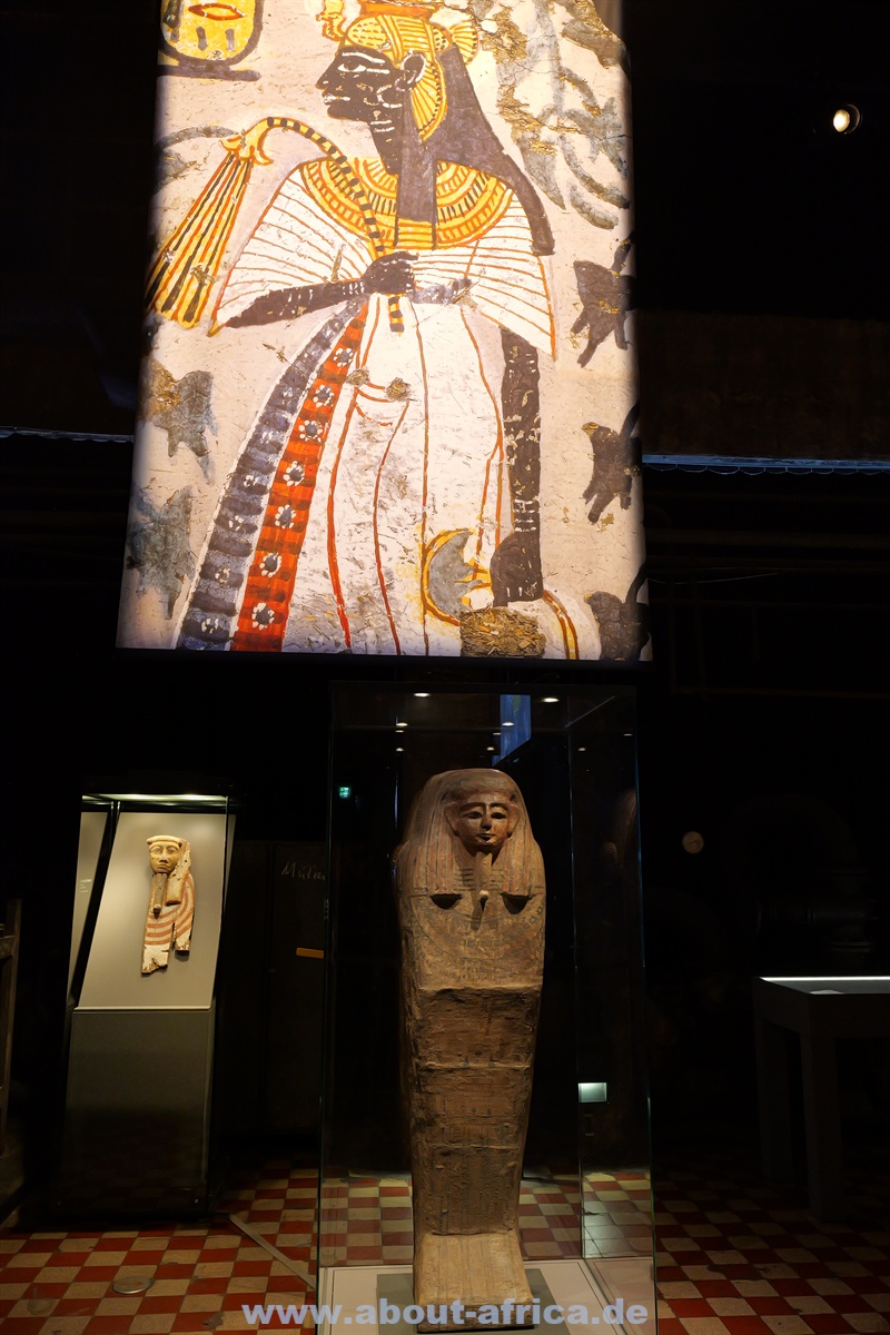 Sie beginnt mit der Prähistorie, so gibt es Fotos von Felszeichnungen. Damit soll auch verdeutlicht werden, dass Afrika ‚die Wiege der Menschheit“ war. Oft wird vergessen, dass auch Ägypten zu Afrika gehört. In Völklingen weist eine sehr schöne Bronzestatue darauf hin. Dazu wird thematisiert, dass Afrika z.B. im Mittelalter mehr war als ein schwarzer Fleck, sondern dass es mächtige Königreiche gab, die mit dem Westen im Austausch standen.