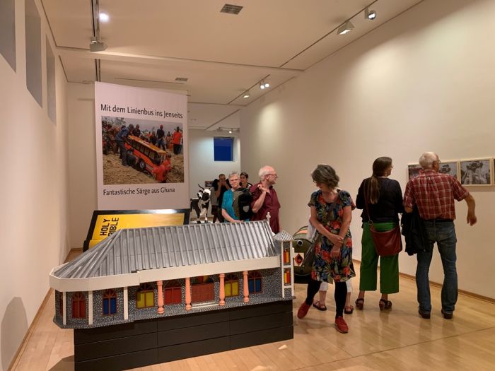 Vom 10. August bis zum 13. Oktober 2019 zeigt das Museum für Sepulkralkultur in Kassel die Ausstellung Mit dem Linienbus ins Jenseits. Zu sehen sind die großartigen skulpturalen Särge aus Ghana.