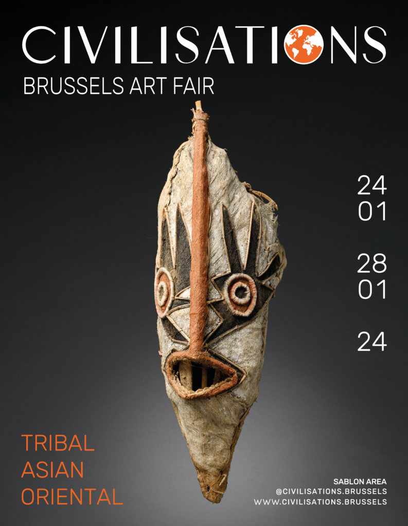 In der Winter-Ausgabe der CIVILISATIONS Brussels Art fair 2024 vom 24. bis zum 28. Januar nehmen 24 Galerien (und eine Buchhandlung) teil. Gezeigt werden Tribal Art, Werke auch Asien und ‚Oriental art‘.