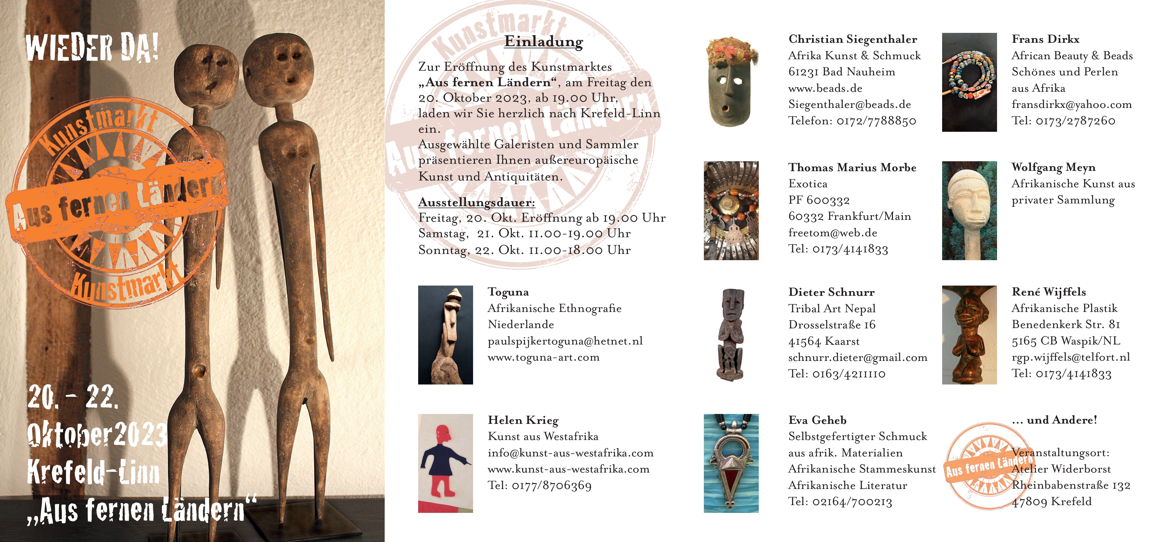 Zur 21. Ausgabe der Tribal Art Fair (TAF) treffen sich vom 26. bis 29. Oktober 2023 20 ethnografische Händler aus 9 Ländern bei De Duif in Amsterdam.