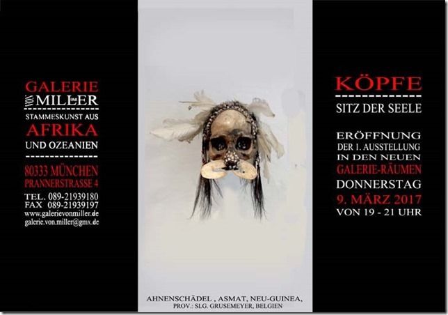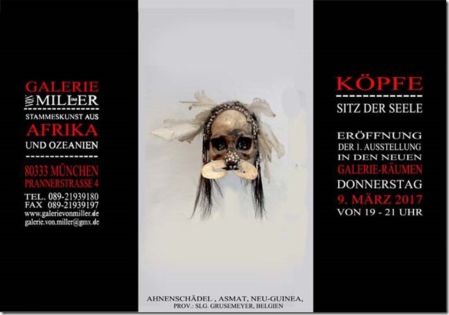 Seit 9. März 2017 findet in den neuen Räumen der Münchner Galerie von Miller die Ausstellung Köpfe - Sitz der Seele statt. Anlässlich der Vernissage bekam ich die Möglichkeit, die Objekte zu fotografieren.