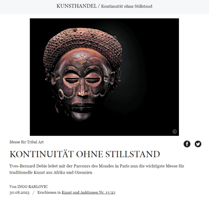 Die Kunst und Auktionen 8/2023 hat meinen Vorbericht zur Lempertz-Auktion Afrika Ozeanienn, die am 10.5.2023 in Brüssel stattfindet, veröffentlicht.