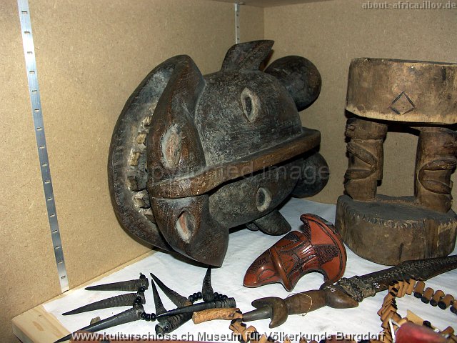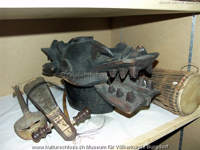 BU Magazin021-5 Kamerun, Büffel-Maske und Kundu, Holz-Stuhl.JPG