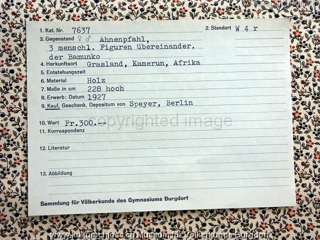 BU-07637-1 Bamunko (Ndop-Bamenda-Gebiet) Kamerun, Holz-Pfosten, Ausstellung, Arthur Speyer, 1927.JPG