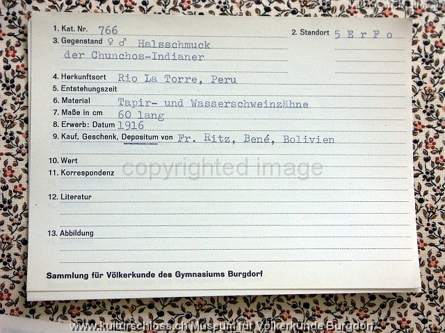 BU-00768-1 Chunchos Rio la Torre Bolivien (Araona oder Toromona), Hals, Jaguar-und Affe-Zahn, Franz Ritz, 1916.JPG