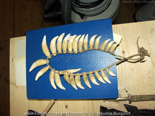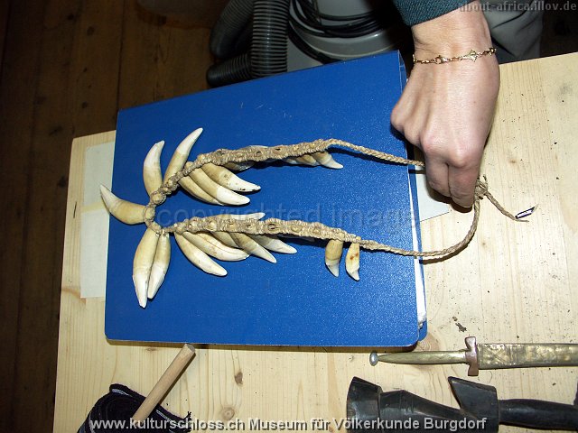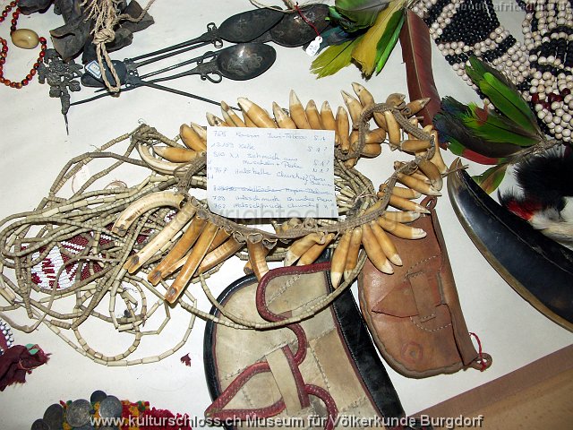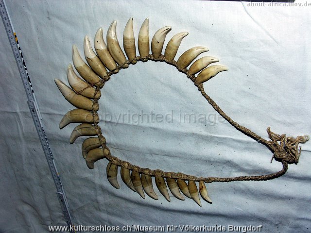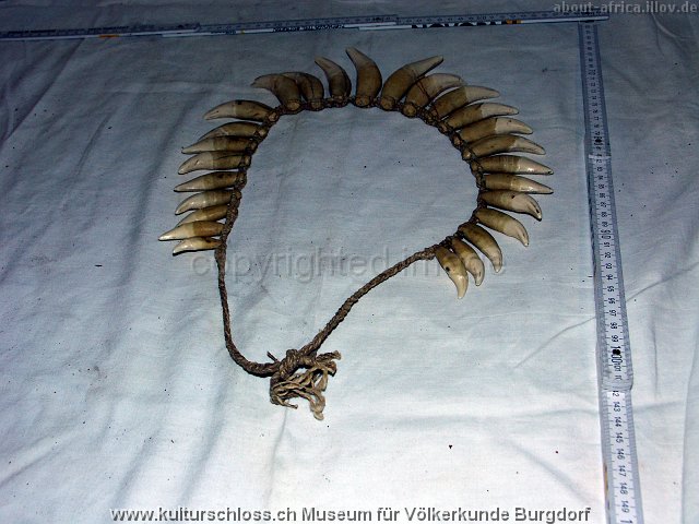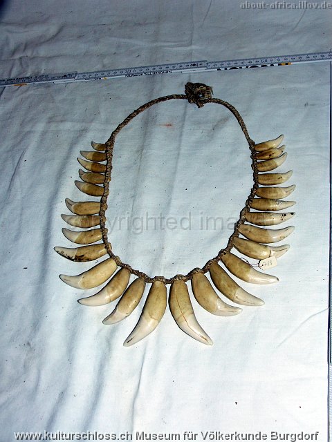 BU-00766-2 Chunchos Rio la Torre Bolivien (Araona oder Toromona), Hals, Wasserschwein- und Tapir-Zahn, Franz Ritz, 1916.JPG