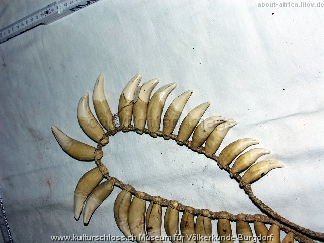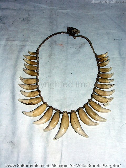 BU-00768-4 Chunchos Rio la Torre Bolivien (Araona oder Toromona), Hals, Jaguar-und Affe-Zahn, Franz Ritz, 1916.JPG